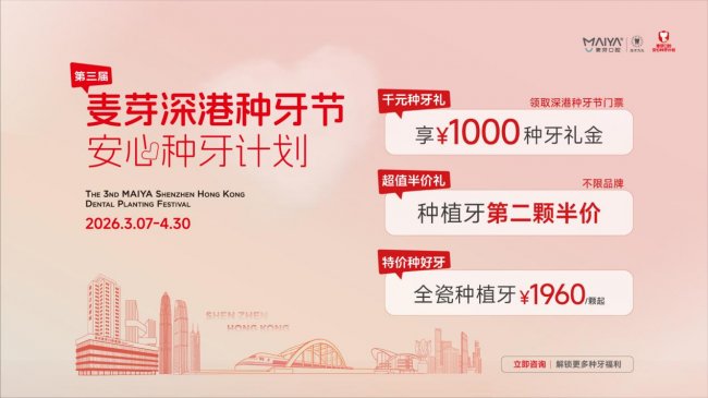 3月7日—4月30日,第三届麦芽深港种牙节,邀您共赴一场安心舒适的种牙之旅。立即预约,锁定千元种牙礼金,开启安心种牙之路!