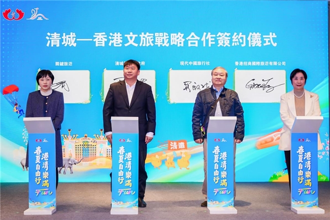 麻鸡村、黄腾峡、陶缸技艺的企业推介同样引人入胜,向现场来宾生动呈现了清城文旅业态的创新与活力。清城区面向香港、澳门市场重磅发布了2026清城区文旅优惠政策,涵盖景区、住宿、餐饮、体验等多个消费场景,香港与澳门朋友凭港澳通行证、回乡证即可享受立减、折扣、套餐优惠等多重福利,力度空前,诚意十足,受到了现场来宾的高度关注与热烈反响。政策为引,合作为桥。清城区人民政府与关键旅游、现代中国旅行社、香港招商国际旅游有限公司共同签订了文旅战略合作协议,未来两地将展开更深层次、更宽领域的务实合作。